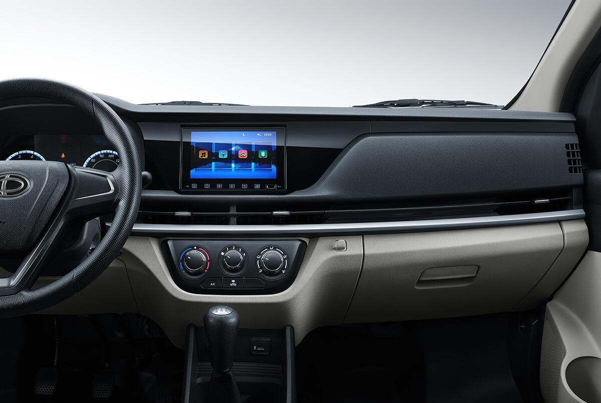 Màn hình giải trí trung tâm 7-inch được thiết kế liền lạc với taplo, kết hợp camera lùi đảm bảo an toàn.